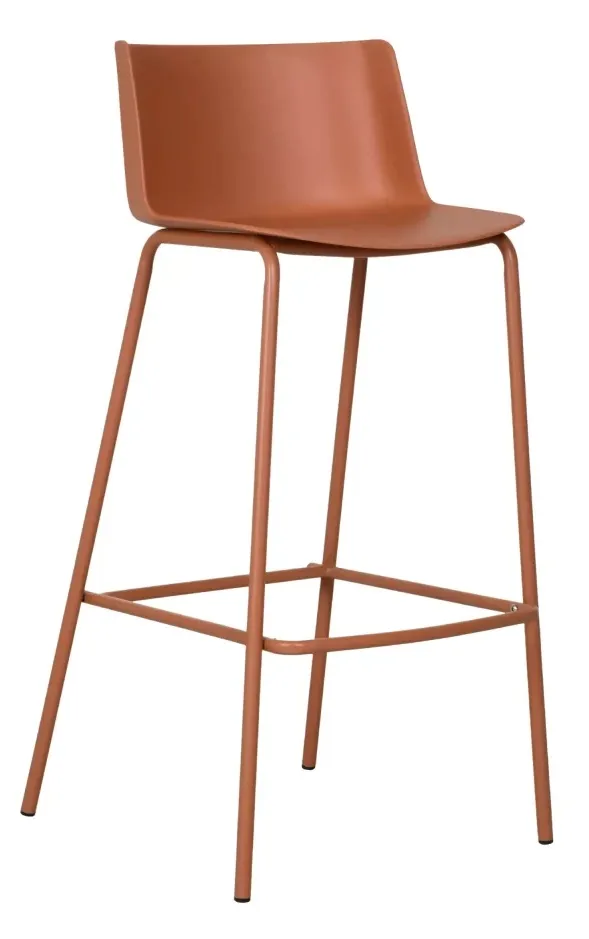 Descrição: A Banqueta Iva é moderna, versátil e resistente, com um assento em polipropileno para conforto e uma base de aço pintada na mesma cor do assento, sendo ideal para diversos ambientes.