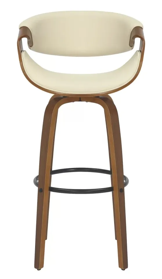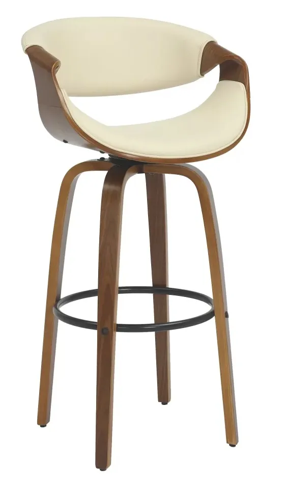 Material: Madeira multilaminada e Revestimento em couro ecológico – PU. – Possui assento giratório.