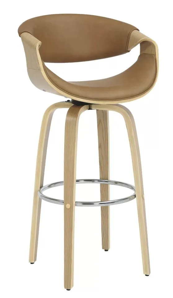 Descrição: Você se encantará com a Banqueta Munira. Suas curvas delicadas adicionam um toque especial ao seu espaço. O assento giratório facilita a movimentação. A combinação da madeira com o assento estofado, disponível em cores neutras, cria uma harmonia perfeita. Ideal para ambientes modernos e minimalistas.